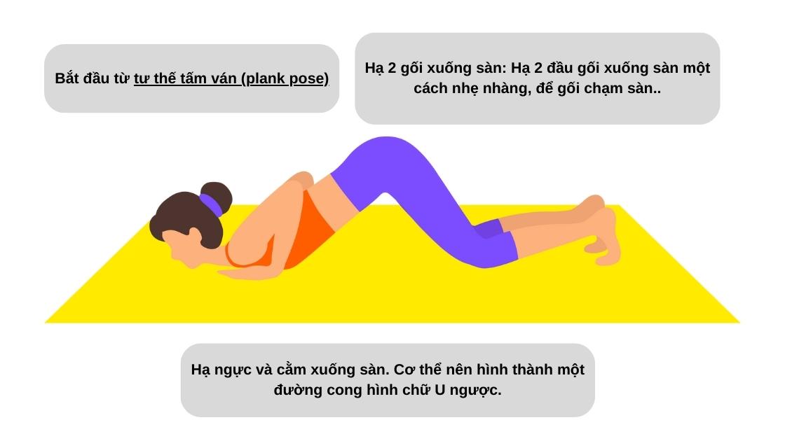 2. Cách thực hiện tư thế gối cằm ngực (Ashtanga Namaskara) hay tư thế 8 điểm chạm thảm: